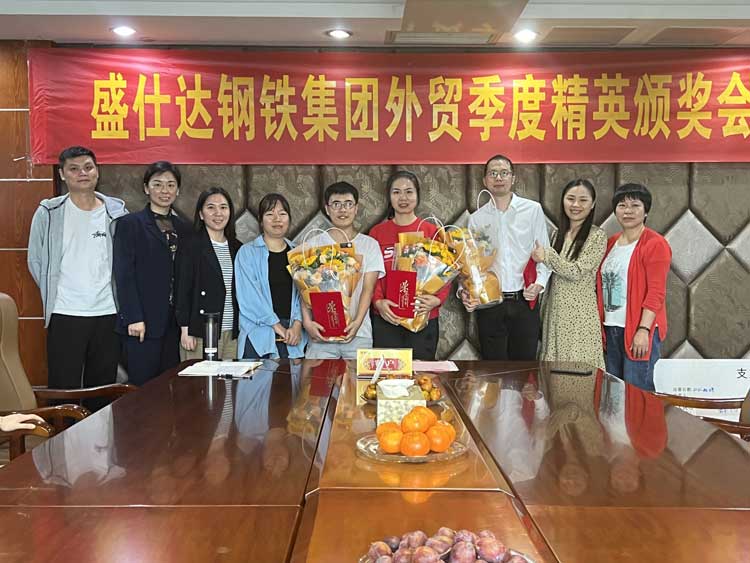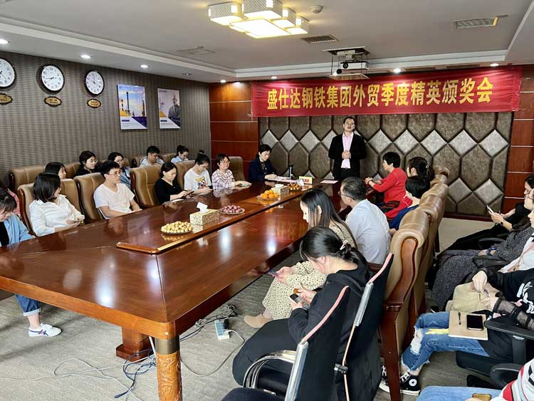 在秋分送爽、碩果累累的季節(jié),2021年度秋季“盛仕達(dá)鋼鐵集團(tuán)外貿(mào)季度精英”頒獎(jiǎng)會(huì)在公司總部及武漢分公司分別成功召開。此次頒獎(jiǎng)會(huì)的意義所在:1、體現(xiàn)出公司對(duì)一段時(shí)間以來,大家為公司付出努力的肯定;2、是一次次成功的實(shí)戰(zhàn)經(jīng)驗(yàn)的分享學(xué)習(xí)平臺(tái);3、對(duì)下一季度的工作加油打氣。