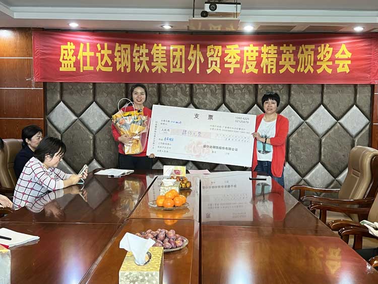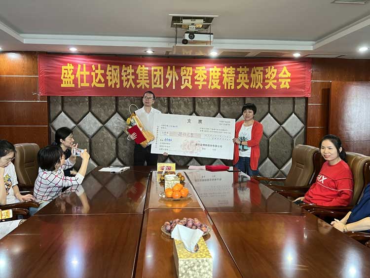弘揚(yáng)先進(jìn),表彰優(yōu)秀是盛仕達(dá)鋼鐵集團(tuán)的企業(yè)文化。本次盛仕達(dá)鋼鐵集團(tuán)外貿(mào)季度精英頒獎(jiǎng)會(huì)也為公司本年度的工作奠定了基礎(chǔ),指明了方向。相信盛仕達(dá)的生力軍們,定會(huì)展望未來,在新的季度中發(fā)揚(yáng)“比、學(xué)、趕、幫、超”的精神,爭(zhēng)取再創(chuàng)佳績(jī)。