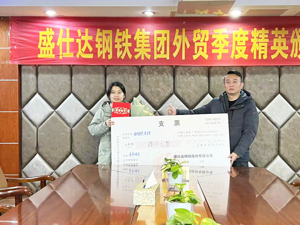 2022年1月17日,盛仕達鋼鐵股份有限公司順利召開外貿季度精英頒獎會,旨在表彰先進、傳承作風,對2021年第四季度各外貿團隊工作認真、業(yè)績突出的人員進行激勵。