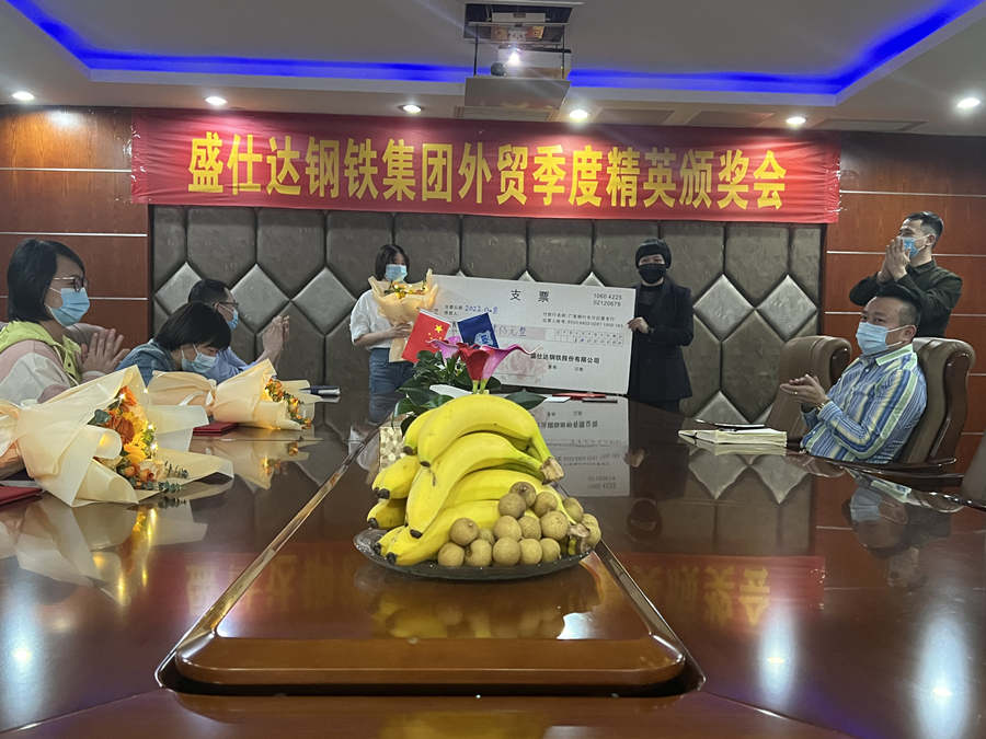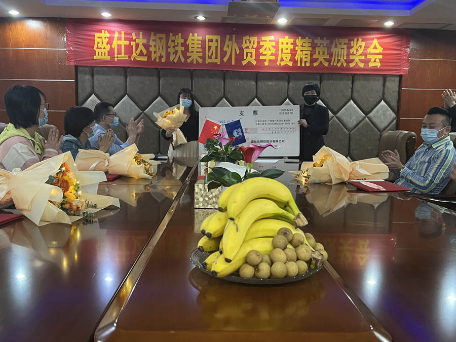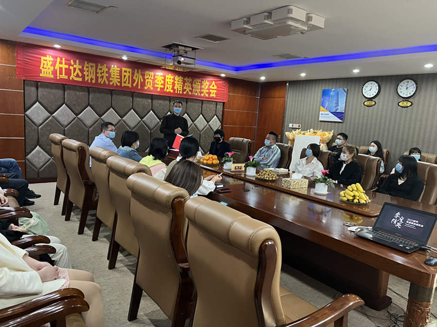 盛仕達(dá)鋼鐵集團(tuán)堅(jiān)持以綠色低碳轉(zhuǎn)型發(fā)展為目標(biāo),改革創(chuàng)新,攻堅(jiān)克難,提升了發(fā)展質(zhì)量和能力,并繼續(xù)加大員工培養(yǎng)及激勵(lì)力度,努力成就員工、成就客戶。于4月8日,盛仕達(dá)鋼鐵集團(tuán)2021財(cái)年第四季度外貿(mào)季度精英頒獎(jiǎng)會(huì)順利舉行。