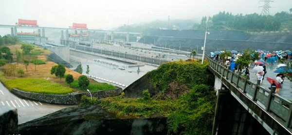 "截?cái)辔咨皆朴?,高峽出平湖",三峽的宏偉氣勢(shì)盡收眼底。天公不作美,下起了雨,惡劣的天氣并沒有阻擋住我們的步伐,我們乘車前往5A景區(qū)--三峽大壩。三峽工程是世界最大的水利樞紐工程,其宏偉壯觀一直只是停留在我們的腦海中。到達(dá)三峽大壩,我們乘《觀光電梯》到達(dá)至高點(diǎn)壇子嶺、站在壇子嶺上,俯瞰長江,遠(yuǎn)眺大壩,一道道雄奇壯美的風(fēng)景盡收眼底。巍巍大壩,靜臥長江,不由得讓人震撼。
